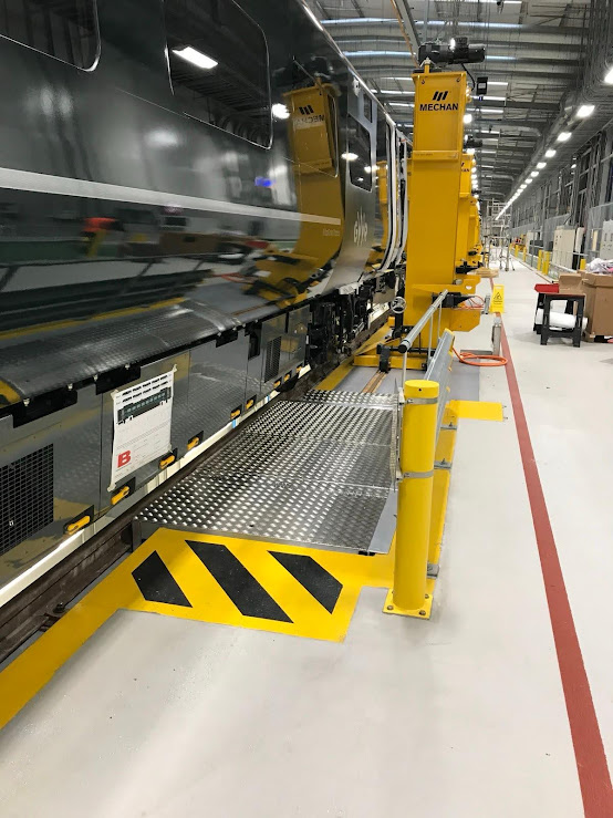 We design around pits, walkways, jigs and overhead services, and can add vehicle edge protection or link platforms to access towers for safe movement along the consist.